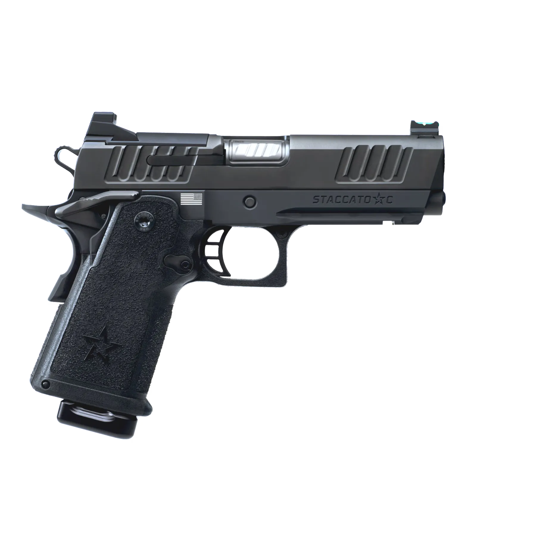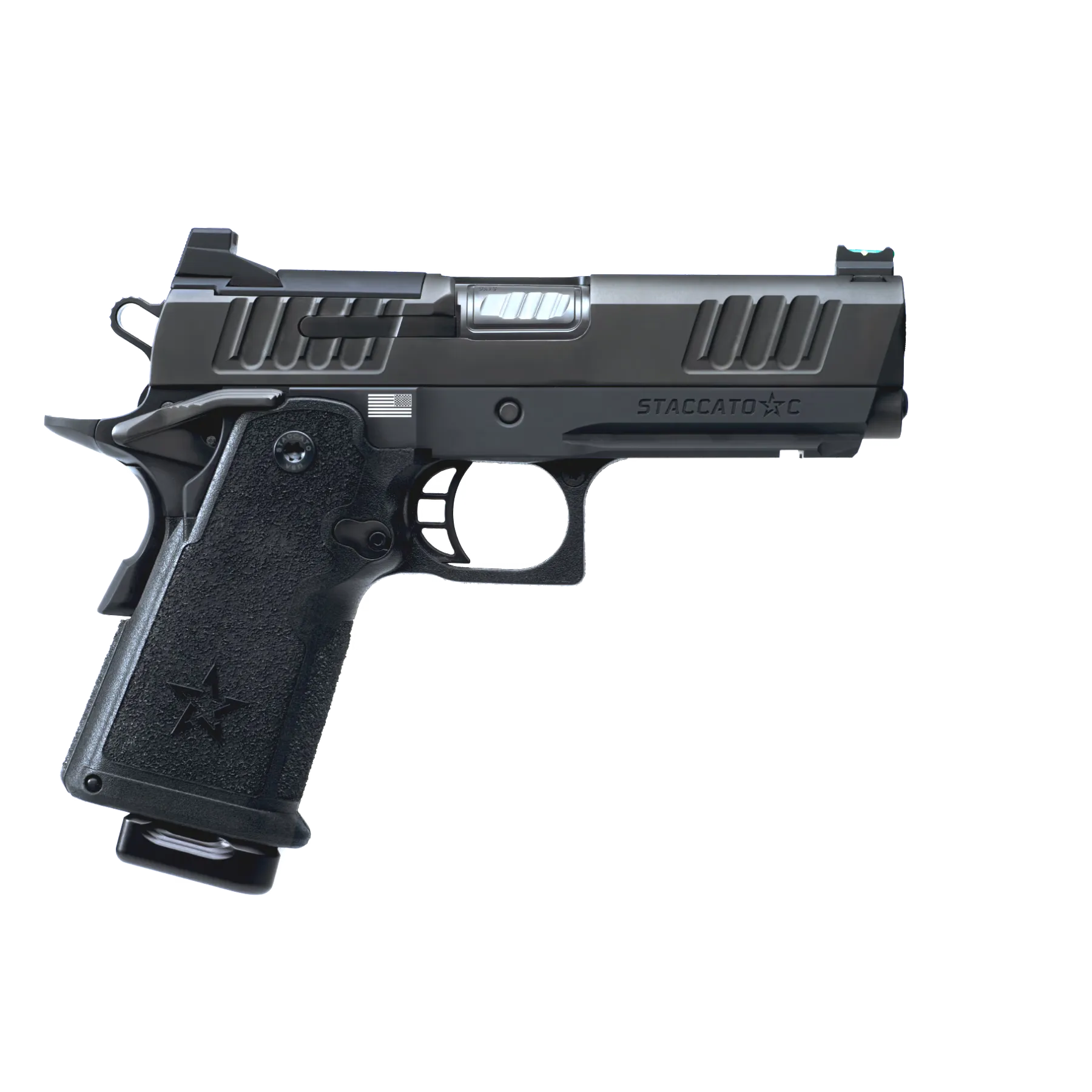 The Staccato C is the latest introduction to the Staccato family of 2011® handguns. It features a 4″ barrel, aluminum frame and all the innovations introduced with its smaller, 3.5″ sibling, the Staccato CS.