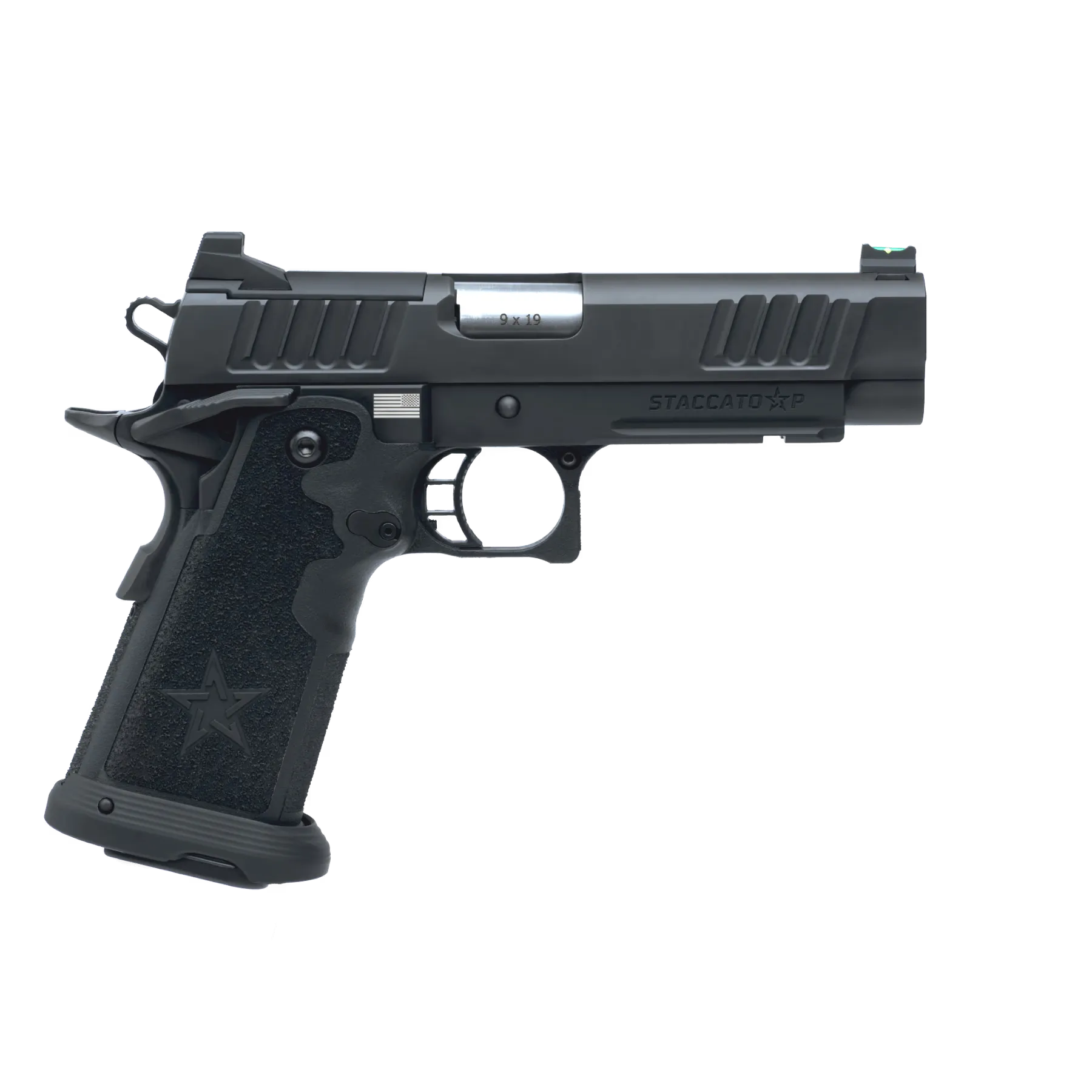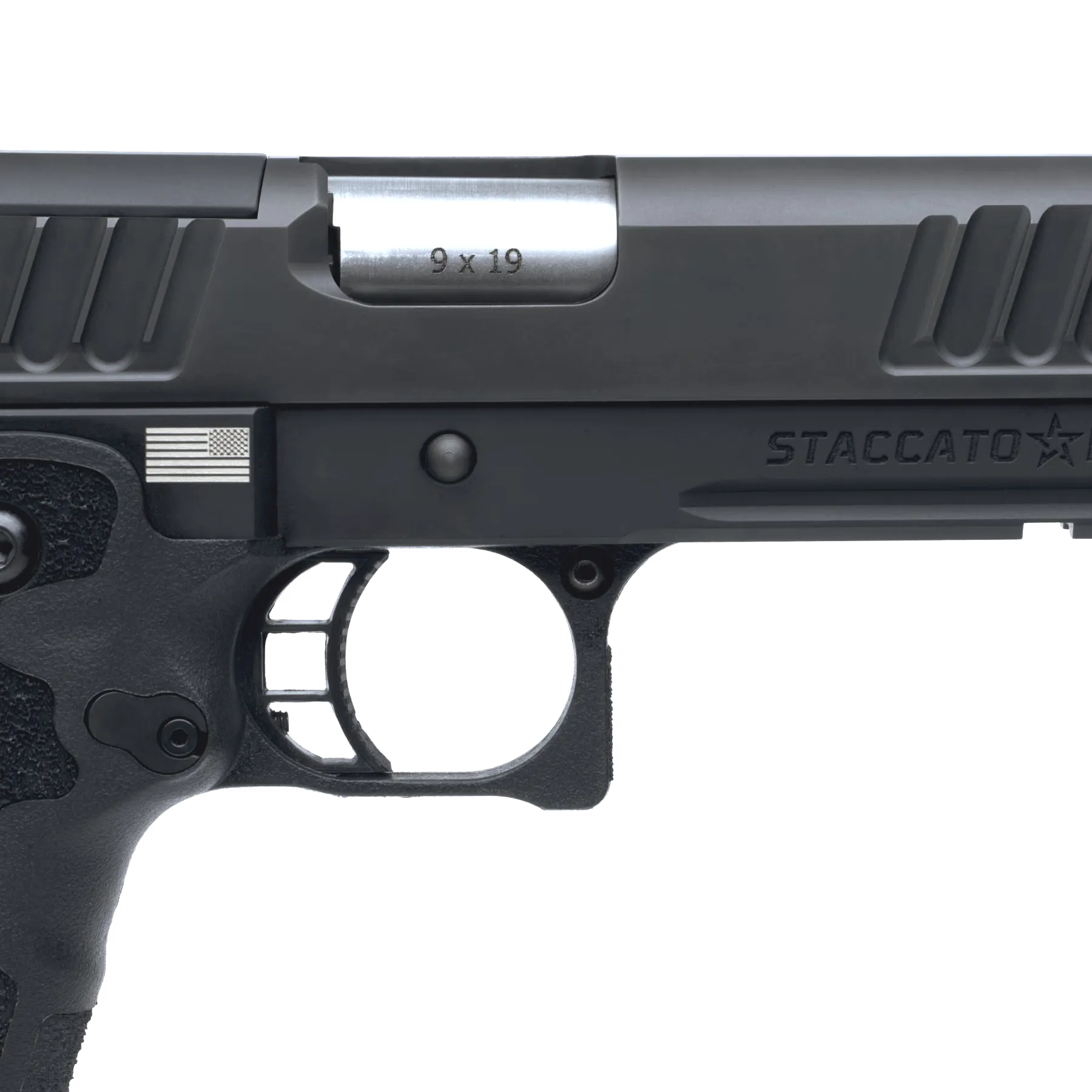 The Staccato P features high-quality materials and construction, including a steel or aluminum frame, steel slide, and a durable DLC finish. The attention to detail in its manufacturing contributes to its overall performance and longevity.